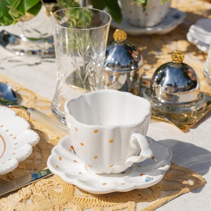 E esse jogo de xícaras na estampa tendência do momento com 15% off? O Jogo de Xícaras de Chá com Pires em Cerâmica Valentina conta com 06 peças e xícaras de 240ml, nessa estampa de poá perfeita que combina tendência e delicadeza.